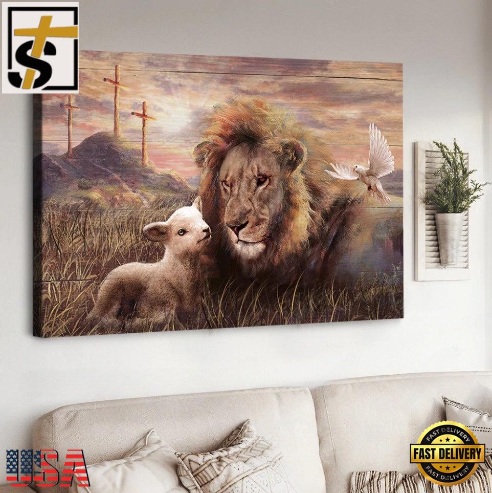 A Peaceful Day Of The Lion And The Lamb Christ Canvas Wall Art – Framed Canvas Wall Art