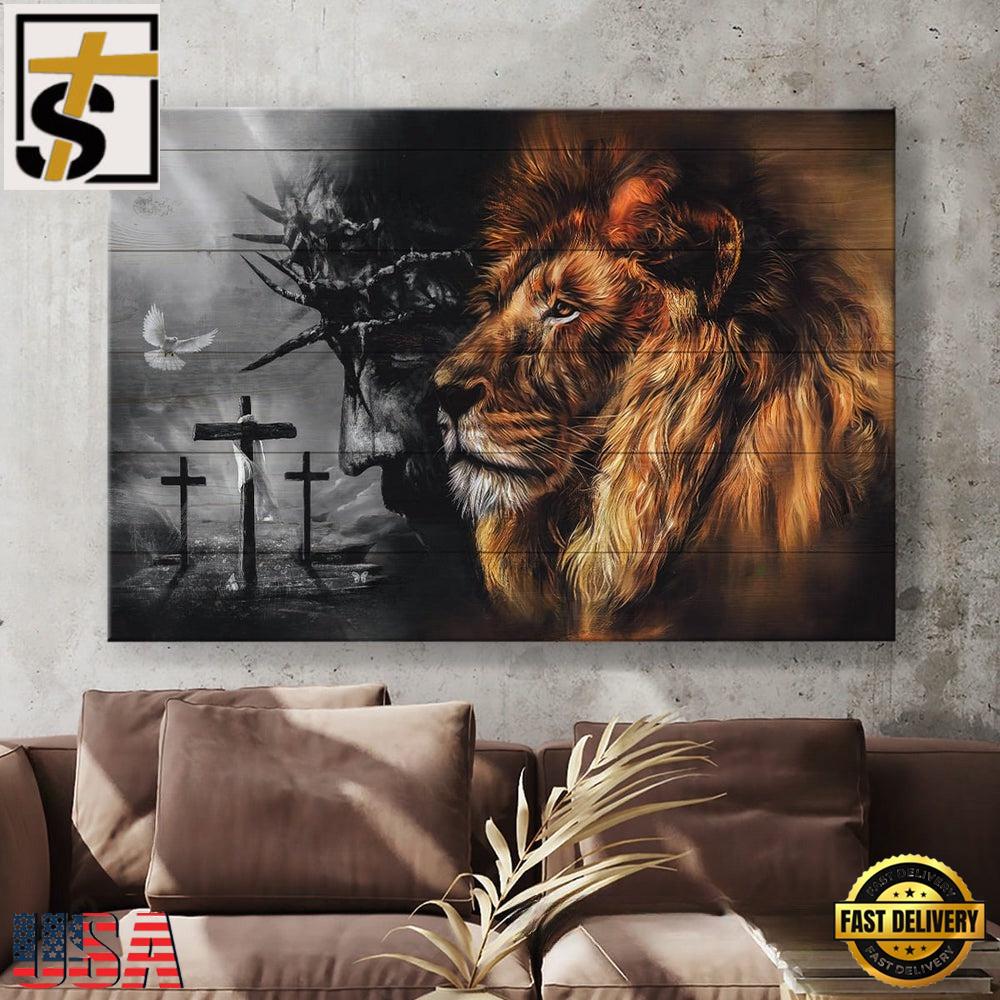 Photos Of Black And White Jesus Painting Lion Of Judah Canvas Wall Art , Gift For God Lover