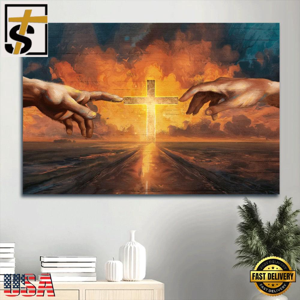Cross Painting Watercolor Sunset Inspirational Art Canvas Wall Art , Gift For God Lover