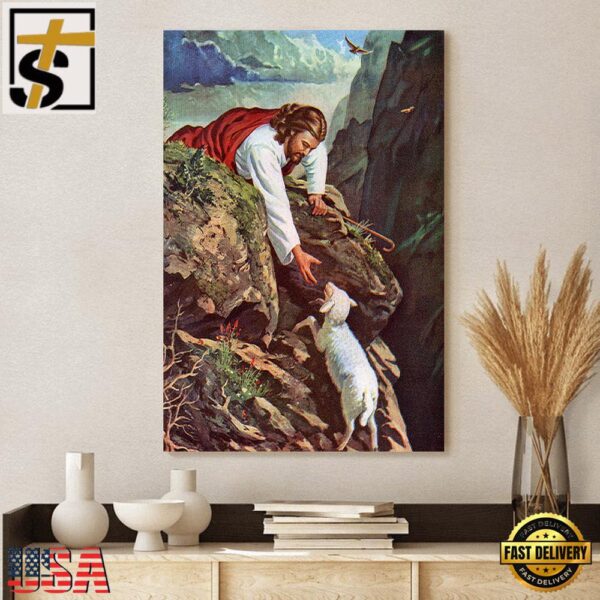 Photos Of Jesus Reaching For A Lost Sheep Canvas Wall Art Jesus Canvas Pictures , Christian Wall Art